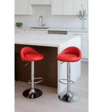 Taburete de diseño, regulable, cromado, similpiel roja. Otros colores disponibles.
