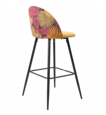 Taburete de diseño, armazón metálico con acabado epoxi negro, asiento y respaldo tapizados en terciopelo amarillo, trasera en tejido decorado floral a juego. Otros colores disponibles. Silla a juego
