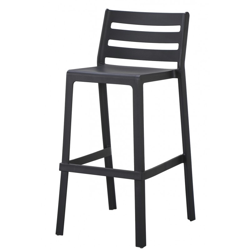 Taburete apilable, polipropileno negro. Uso en exterior e interior. Otros colores disponibles. Sillones a juego.